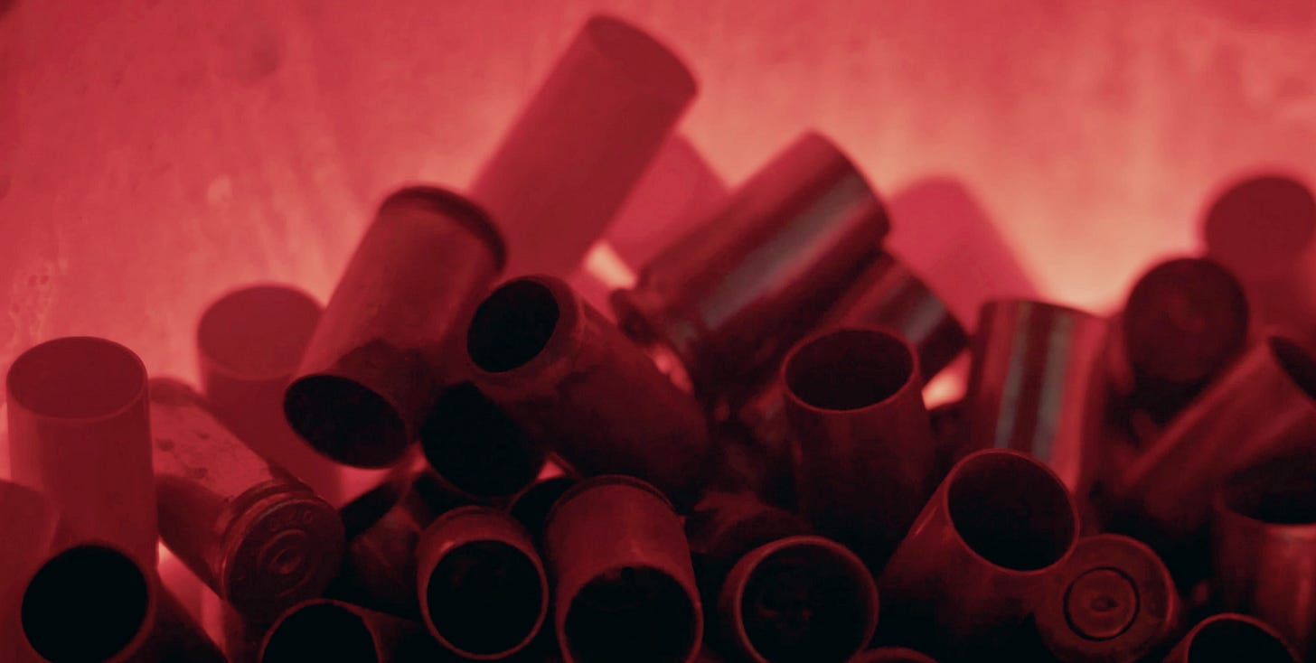 Bullets crack, ping, and thud against their targets of stone, metal, flesh. Explosions trigger tinnitus reactions that ring in one’s ears like ten thousand teapots boiling over. Shouts and guttural utterances of pain, terror, and violence—all of this is the Hollywood horror we’ve heard.